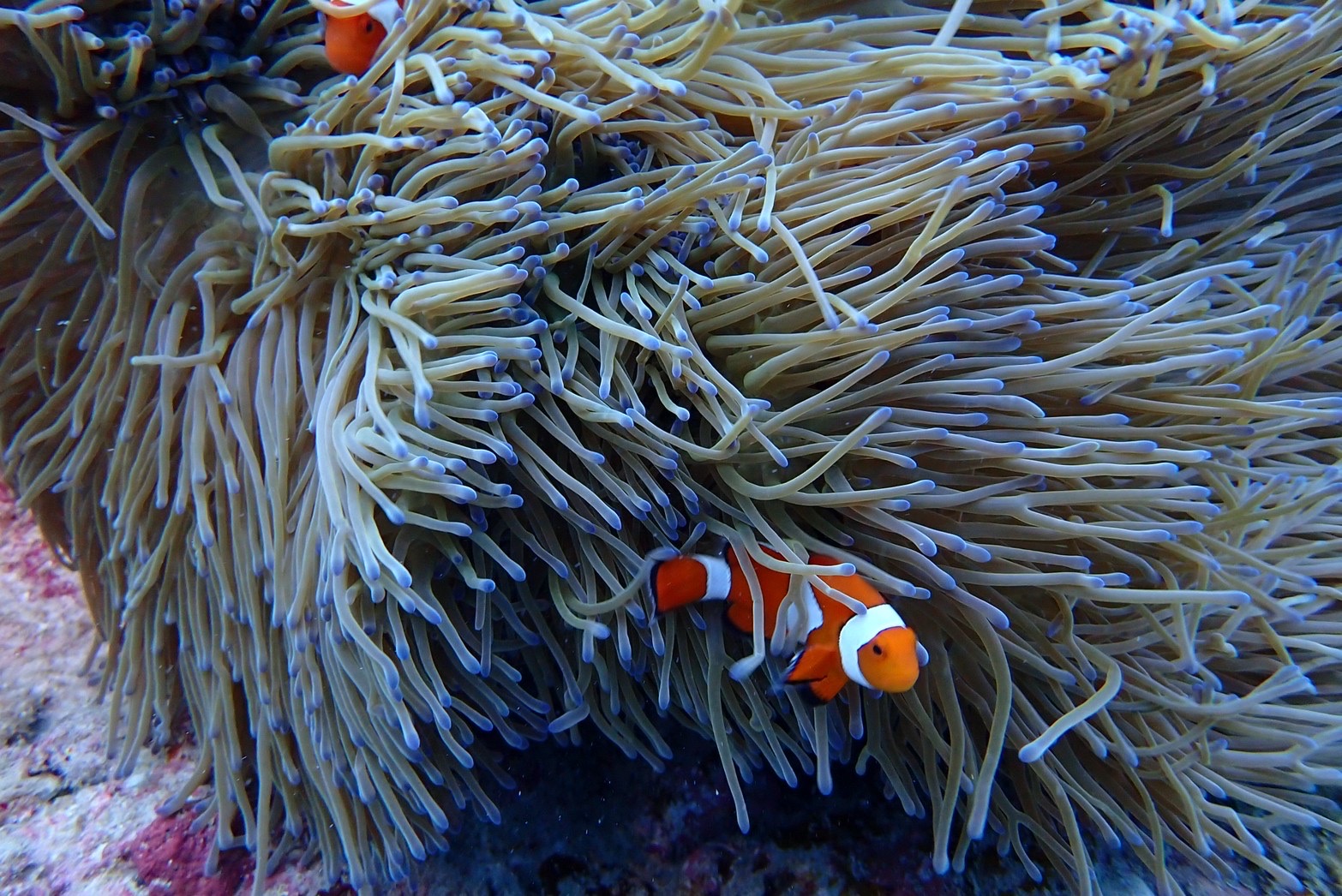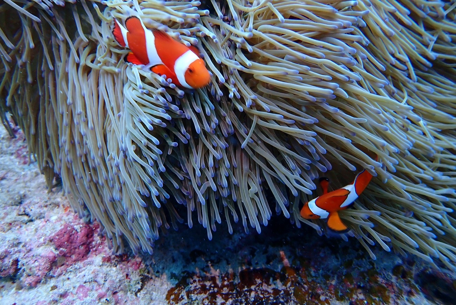 こういった、特徴を持つ魚が『カクレクマノミ』という魚になります!!皆さん、沖縄などで潜った際は探してみてください!!