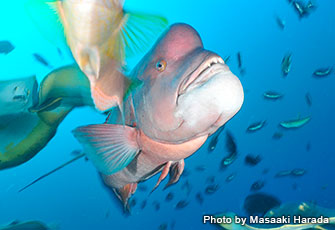 「コブダイ」。ダイバーがどんなにサメに夢中になっていても、必ず私に振り向いてくれるはず!と決してダイバーを離れないけなげな子。
