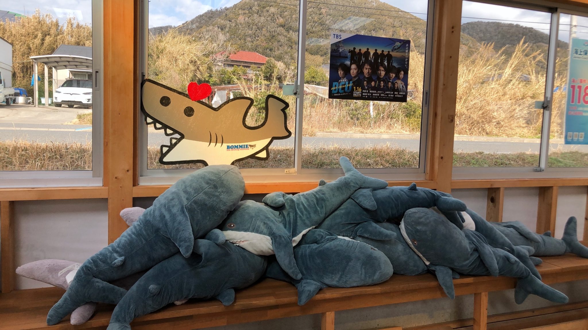 伊戸にはもともとサメが多く、漁の定置網に入り込んで網の中の魚を食べてしまうことが問題となっていました。そこで、漁業関係者から解決策を相談された《伊戸ダイビングサービスBOMMIE》の塩田さんが、2009年から誘導作戦を開始。すると自然とサメやアカエイが網から離れるように。こうして現在のような“シャークシティ”が完成したのだそう!!