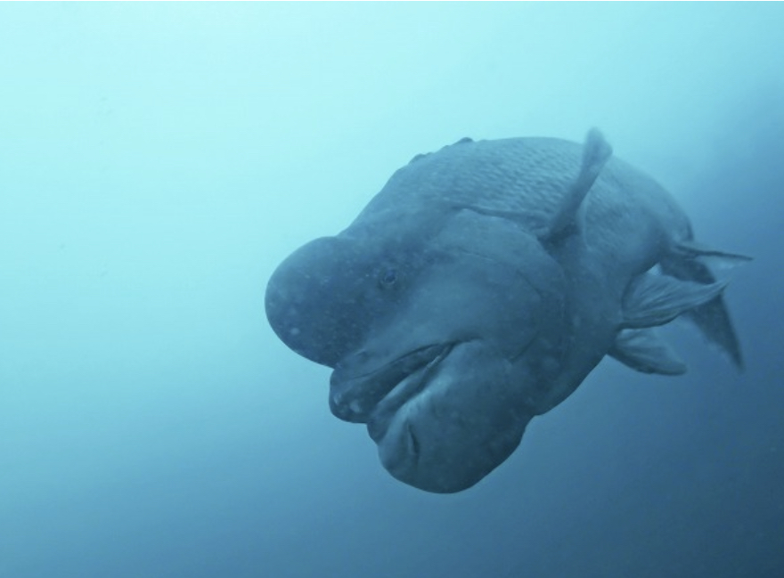 タイと名前が付いていますがベラの仲間です。大きいものは1mを越えます。子供の頃はすべて雌で、一部の個体が雄に性転換します。雄は50cmを超えると頭にコブが出てきます。