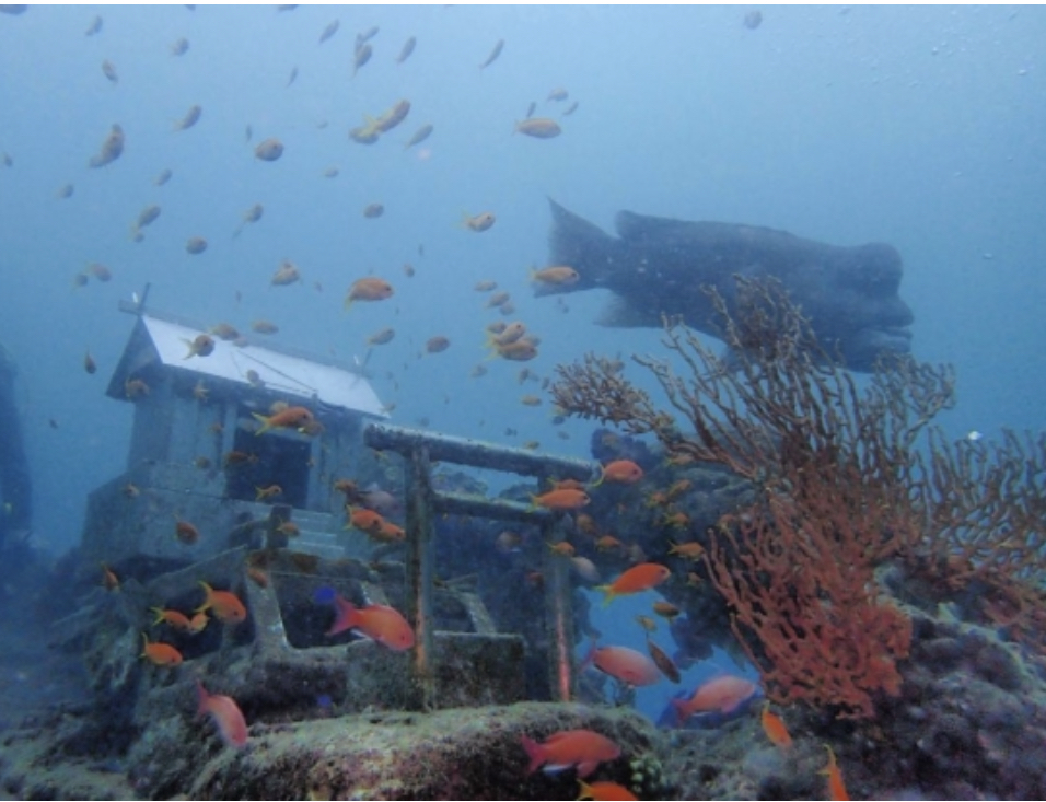 世界で唯一の海底に鎮座する神社、人懐っこいコブダイやマンボウと、様々な魚が群れ集うのは波左間だけ!